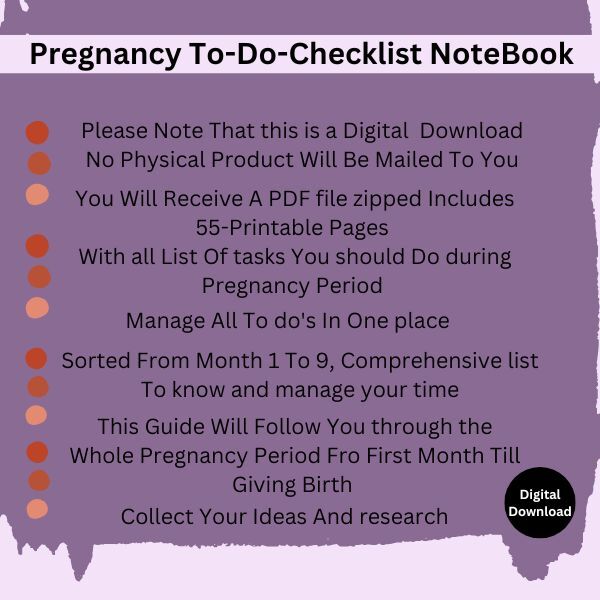 55+ Printable Pregnancy Journal Guide Note Book, Pregnancy To do Check list , Pregnancy Planner prints book for baby care